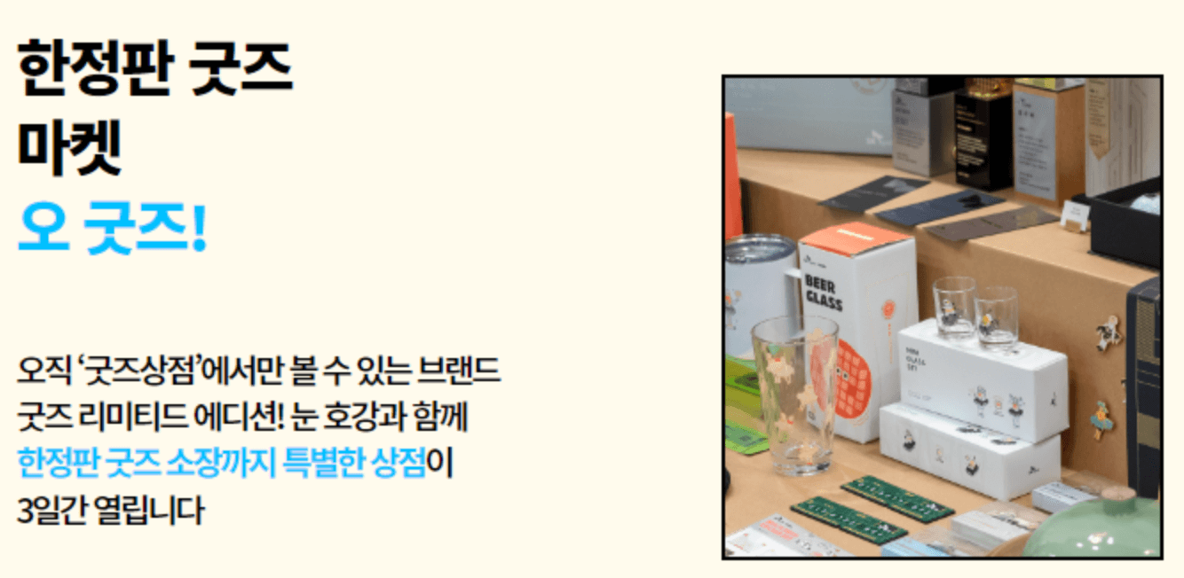 다양한 브랜드나 기업의 특성을 담고 있는 굿즈 중 사랑 받고 있는 것들이 정말 많은데요. 이번 2023 굿즈 상점에서는 다양한 브랜드의 굿즈들을 구경할 수 있는 정말 좋은 기회가 될 것 같습니다.