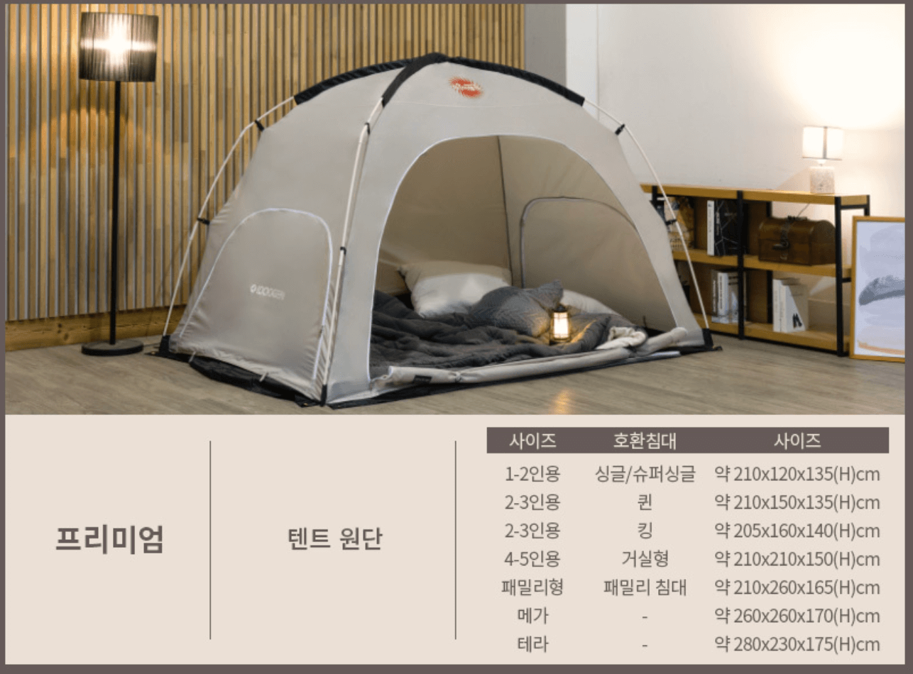 그러나 우리 집 안방 또는 거실 사이즈에 적합한 난방텐트는 도대체 어떤 거지?라는 고민이 드는 분들을 위해 텐트 추천 사이즈 정리해 드리겠습니다.