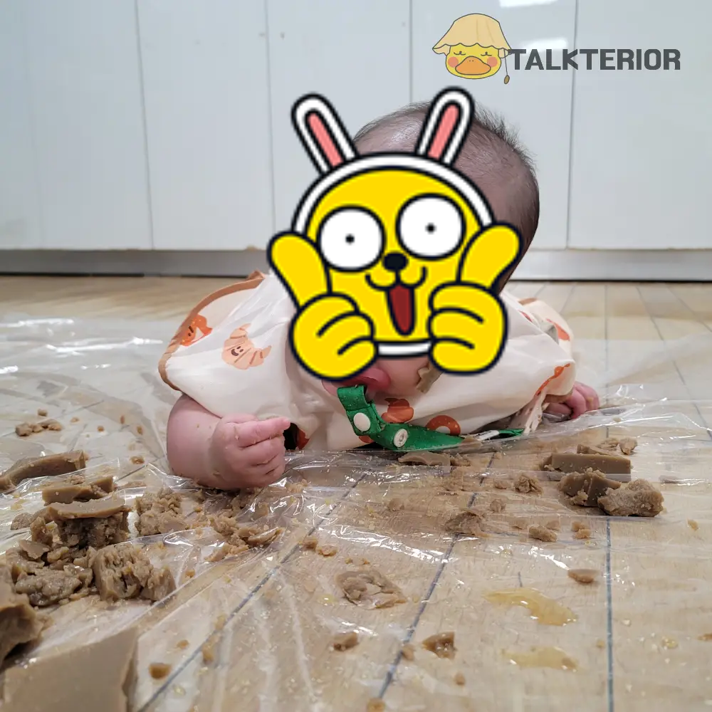 그리고 쪽쪽이를 물려도 이 시기 아기들은 한창 구강기이기 때문에 잠깐 사이에 오감놀이 재료를 입에 넣으려고 한다. 못하게 하려고 했는데 어쩌다보니 우리 아기는 도토리묵을 먹어버렸다 ㅠㅠ 이유식 재료도 아직 엄청 다양하게 테스트 해본 건 아니었어서 정말 심쿵했는데 다행히 별 일은 없었다. 그러나 항상 조심해야 할 것,,