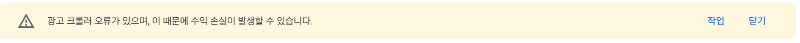 며칠 전 광고 '크롤러 오류가 있으며 이 때문에 수익 손실이 발생할 수 있습니다.' 라는 메세지도 떠서 식겁을 하고 구글을 마구 뒤졌었는데 사실 이렇다할 해결책이 없는 것 같고 이유도 없는 것 같다. 근데 그 때는 그 페이지만 광고 노출이 안 된 거 같은데 지금은 블로그 전체가 광고 노출이 안 되서 미쳐버리는 줄 알았다.