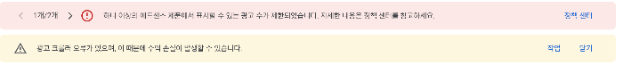 초보 블로거에게 닥친 시련. 애드센스 수익 손실 관련 문제. 보통은 애드센스 계정 정지인 경우가 많은데 이번에 나에게 닥친 문제는 '하나 이상의 애드센스 제품에서 표시할 수 있는 광고수가 제한 되었습니다. 자세한 내용은 정책 센터를 참고하세요.' 라는 메세지가 애드센스 상단 메세지였다.